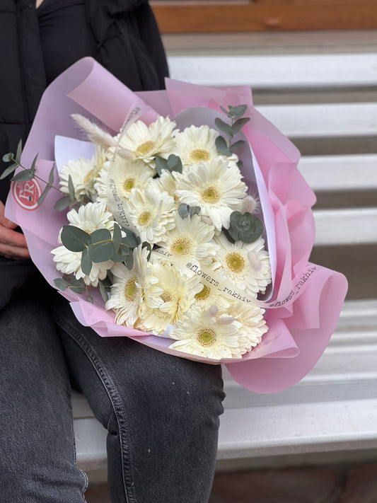 Монобукет з 15 білих гербер