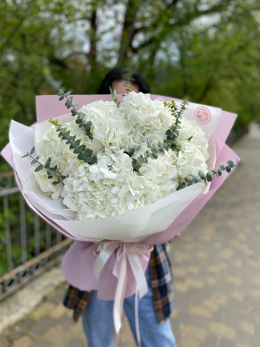 Монобукет із 7 Гортензій та Евкаліптом